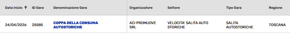 NOTA: Si raccomanda di prestare la massima attenzione nelle pre-iscrizioni sul sito Federale per evitare di iscriversi alla gara delle auto moderne.