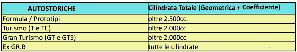 Si rammenta che per tutte le vetture dotate di turbocompressore la cilindrata geometrica va moltiplicata per il coefficiente 1,7