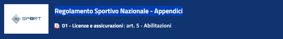 NOTA: L’Abilitazione verrà concessa d’Ufficio a chi è in grado di autocertificare (con allegata una classifica) di avere condotto in gara, negli ultimi cinque anni, una vettura con una cilindrata e caratteristiche tecniche equivalenti a quella che dovranno utilizzare.